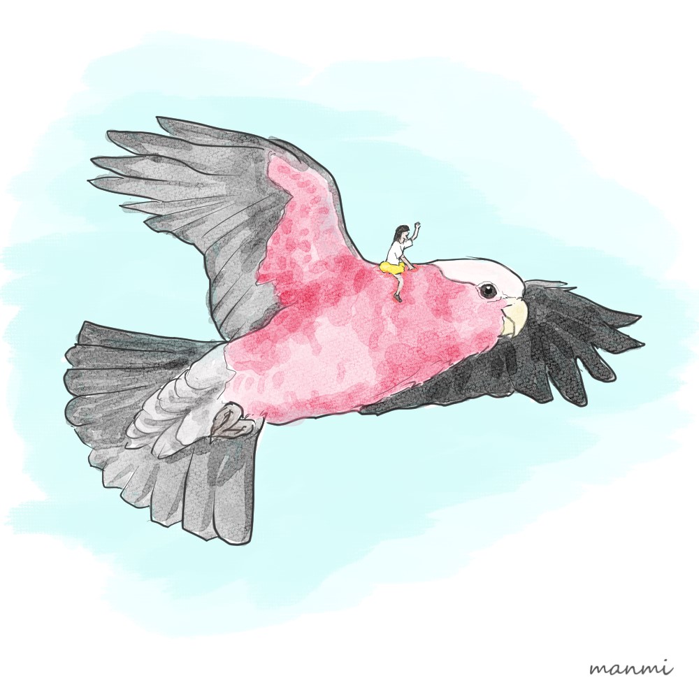 おはようございます❣ 滑空ダルマインコ😊 #ダルマインコ #Psittaculaalexandri #RedbreastedParakeet #Parakeet #bird #illustration #お絵描き #イラスト
