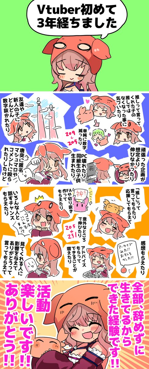 星乃カニ3周年でした!!!たくさんお祝いありがとうございました~~うれしい~~~!!!!! しばらく3Dで遊んでるけど、原点回帰ってことでサプライズで2D姿用意しました!!かわいいって言ってもらえてうれしい!!!これからもどうかよろしくね!!!!! twitter.com/hoshinokani/st…