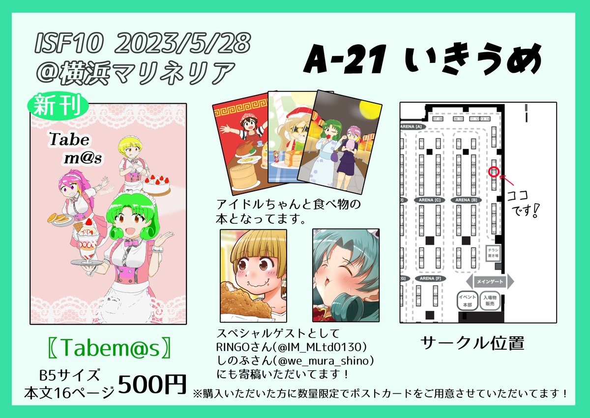 5/28(日)開催 #ISF10 のお品書きが完成しました! お品書きにもありますがアイドルちゃんと食べ物が絡んだイラスト本になります!今回ありがたいことにゲストの方々にも寄稿いただきました!! 初めてのイベントで至らぬ点も多いと思いますがお立ち寄りいただけると幸いです。
