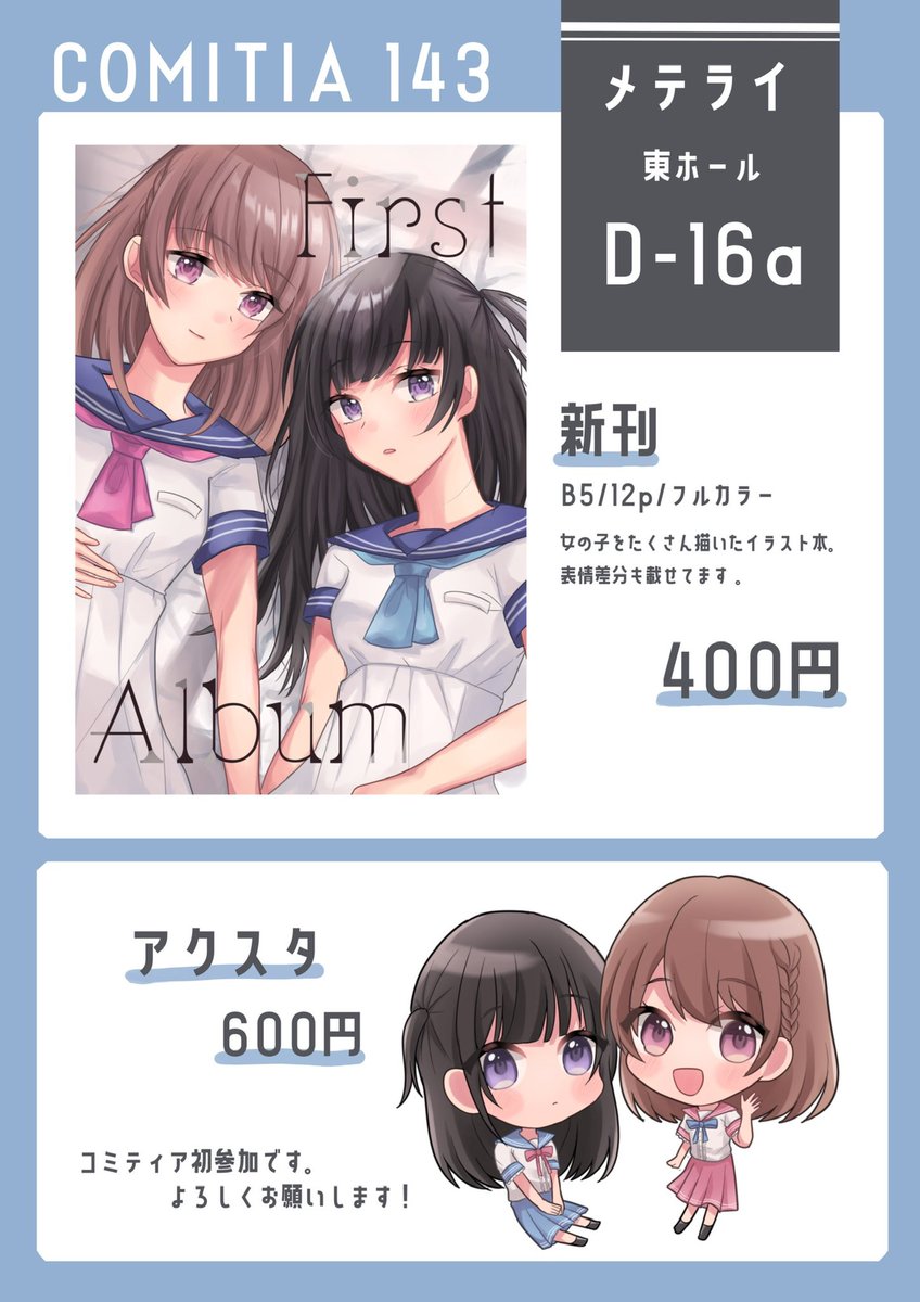 コミティア143のお品書きです☺️ 初参加で緊張しますが、よろしくお願いします〜! #COMITIA143 #コミティア143