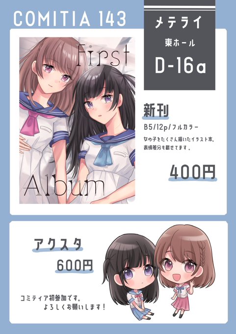 3 8 コミティア143のお品書きです☺️ 初参加で緊張しますが、よろしくお願いします〜! #COMITIA143 #コミティア143 23/02/17 19:31