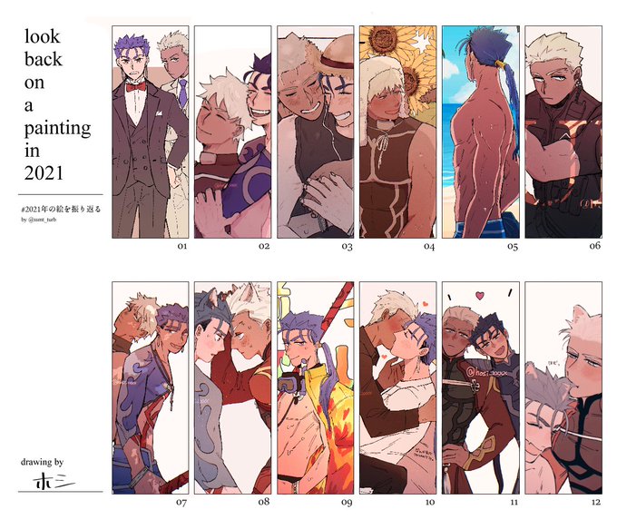 #2021年の絵を振り返る カラーの槍弓でセレクトしました。結構鮮やかだね🌈選びきれなかったのでほかの絵とか漫画類は画像欄か支部から見てください。 来年も元気に槍弓に狂っていきたいと思います‼️💙❤️👊