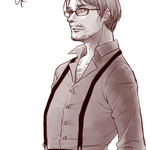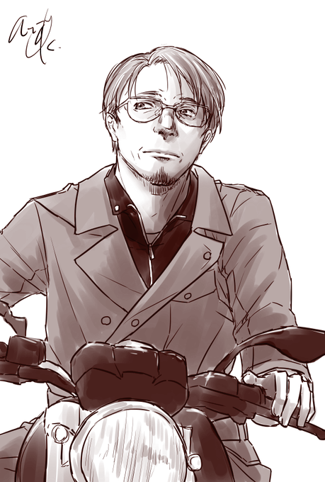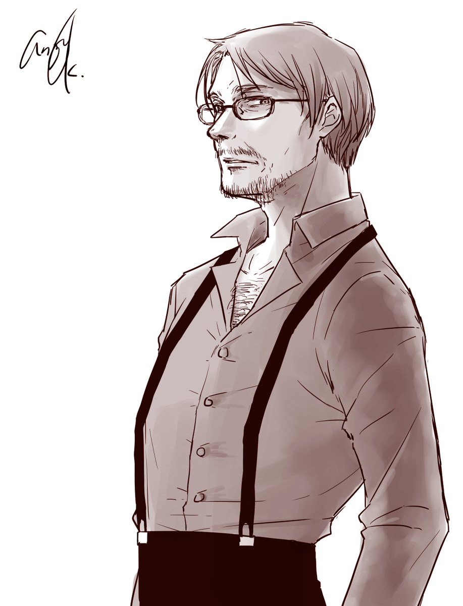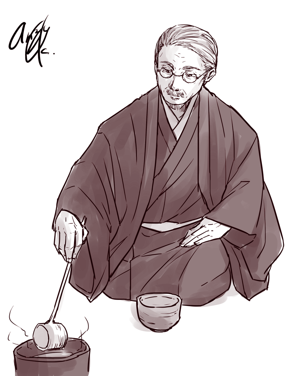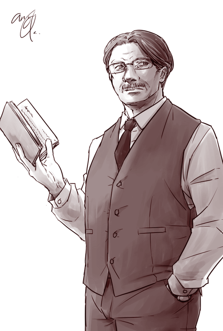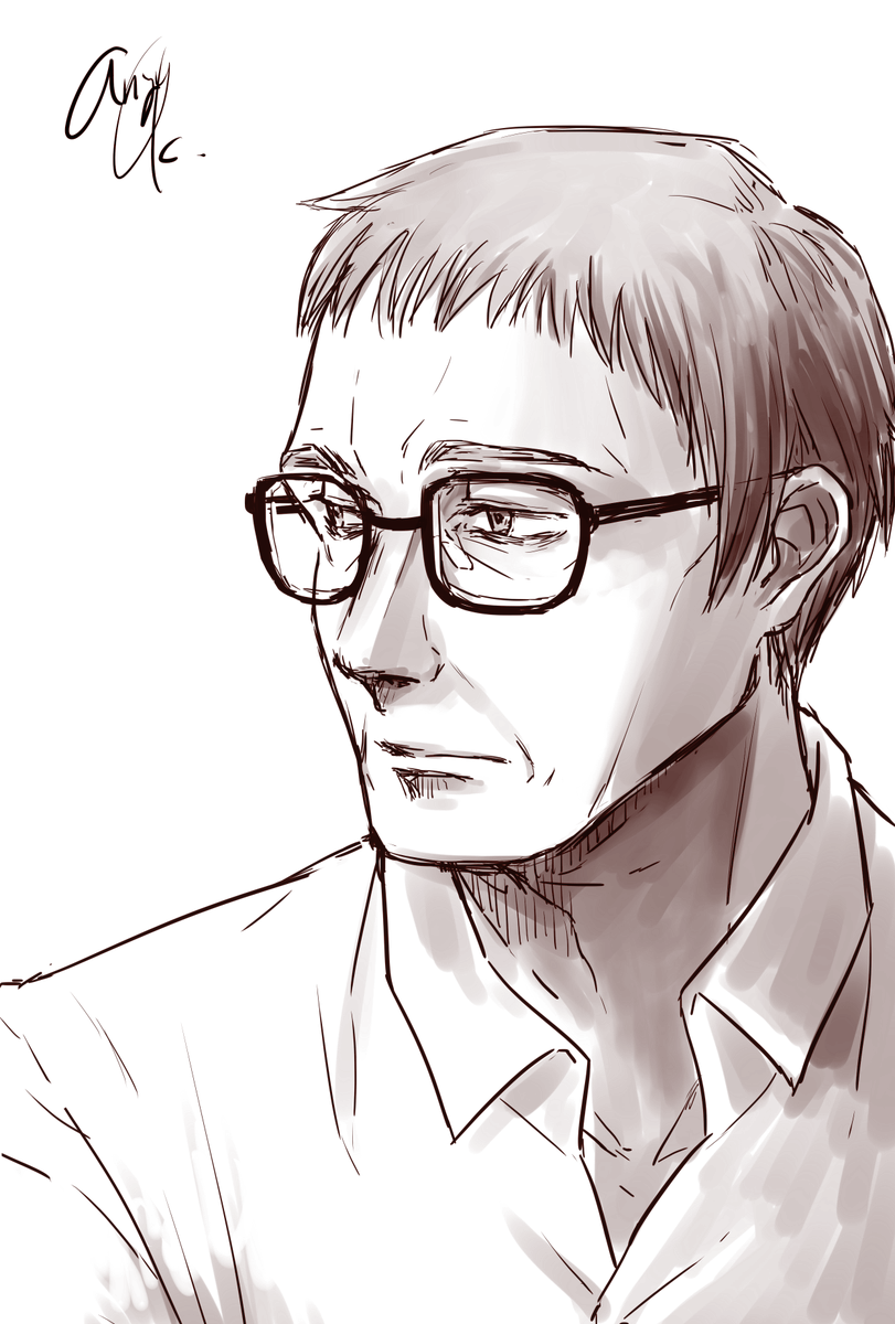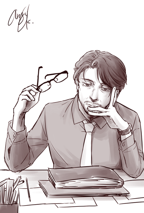 #ヒゲ版深夜の真剣お絵描き60分一本勝負 お題 【国語の先生】 生徒には日本の純文学を薦めるけど、本人はヘッセとモームが好き。 珈琲党。喫茶店で食べるチーズケーキとガトーショコラがとても好き。下戸。