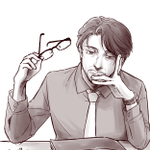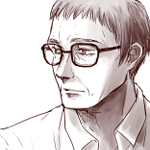#ヒゲ版深夜の真剣お絵描き60分一本勝負 お題 【理科の先生】 日頃は愛想のない怖い目つきと低い声で恐れられているが、打ち解けると冗談を言ったり、理科室に遊びに行っても受け入れてくれる。 「うちのカミさん」が言葉の端々に出てくる。 競馬好きらしい。