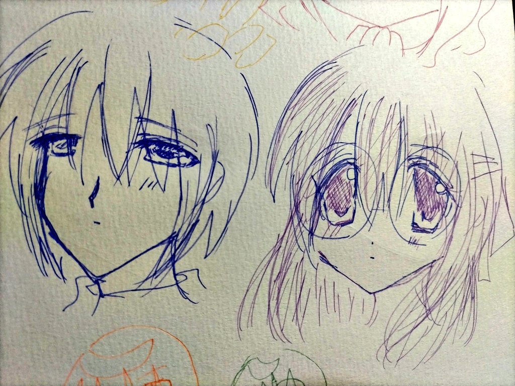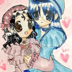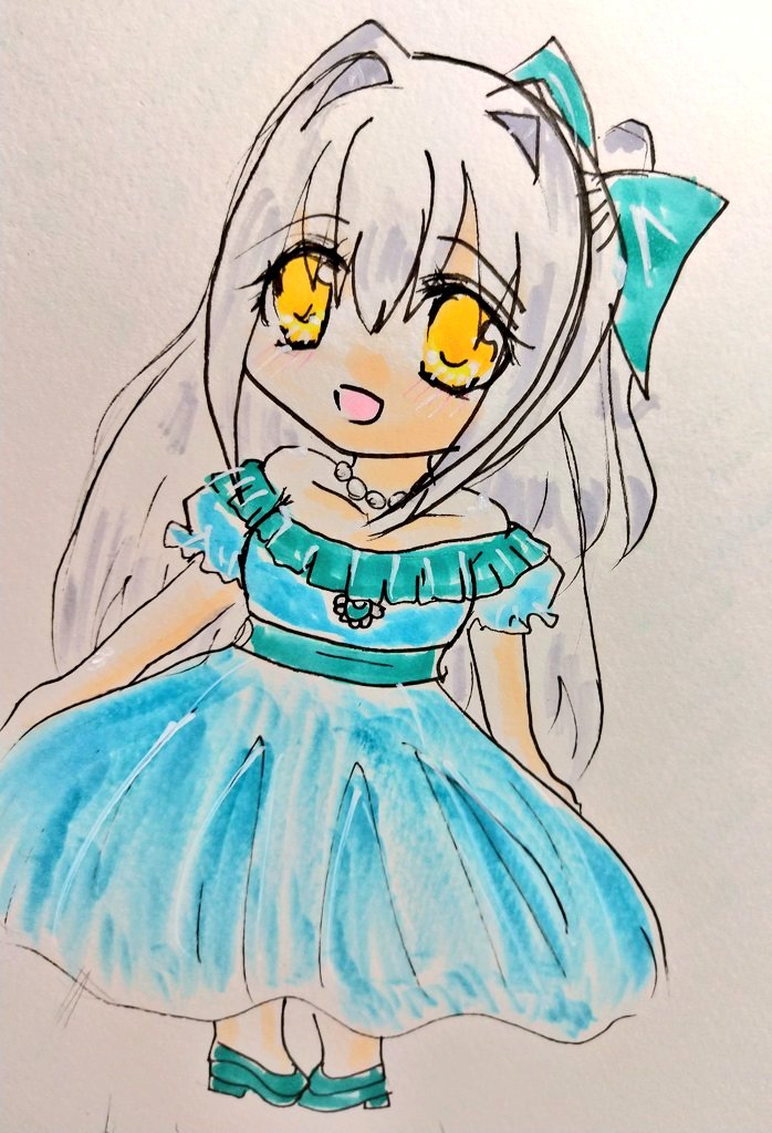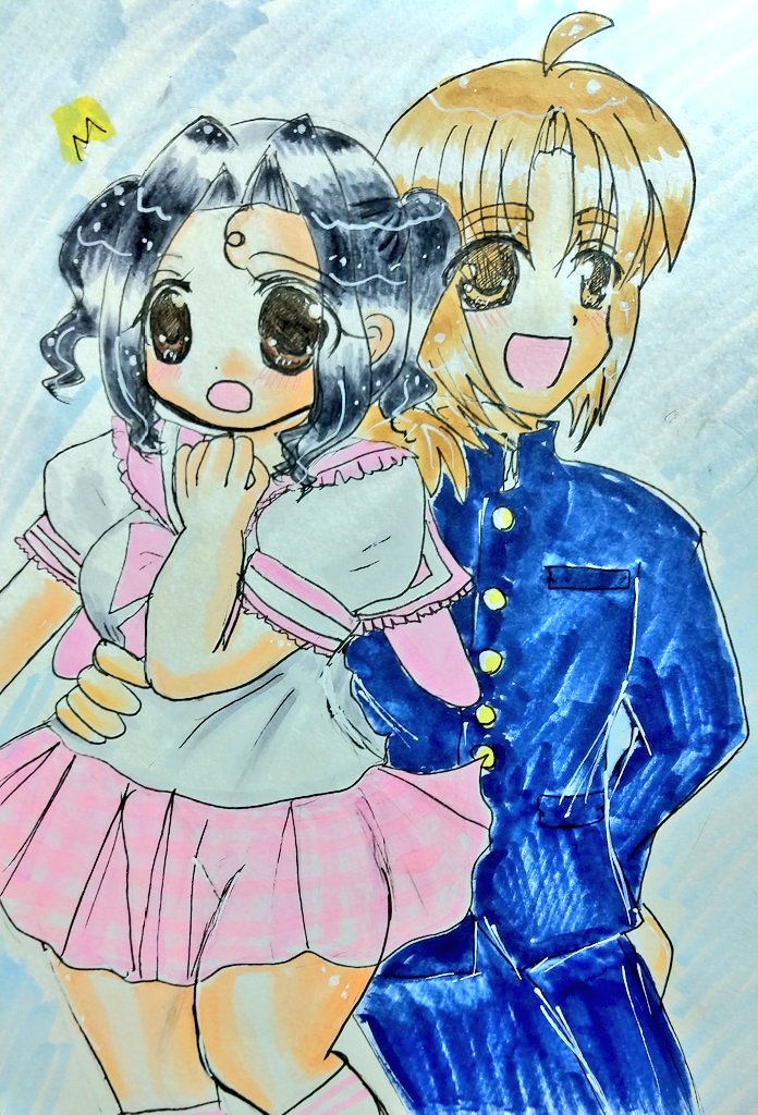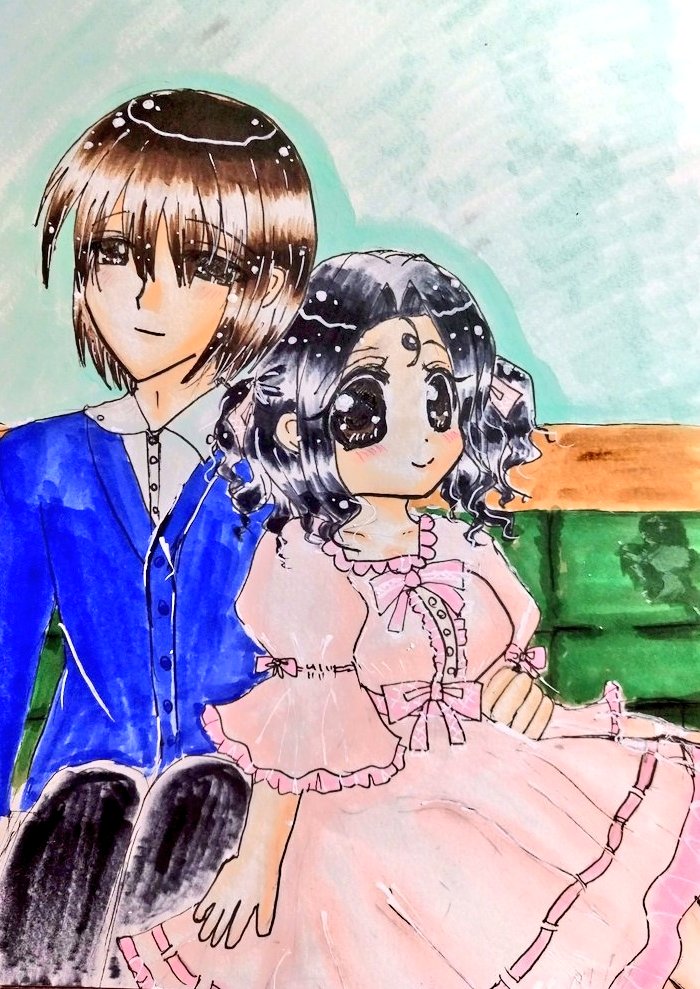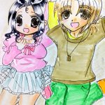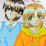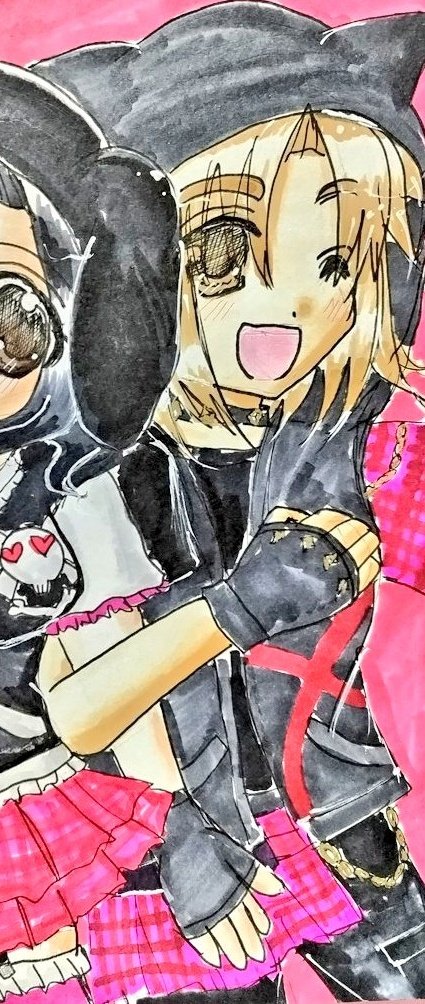 #今月描いた絵を晒そう こちらはよそのこ。お誕生日向けに描かせていただきました(*´ω`*) 介那さんのところの翡翠ちゃんと、真義さんのところのやつめのこちゃんです( ꈍᴗꈍ) ぷにぷにで描くのが好きです( ´;゚;∀;゚;) 逆に面長は苦手です(;_;)(うちのこだと俊騎、霧夜)