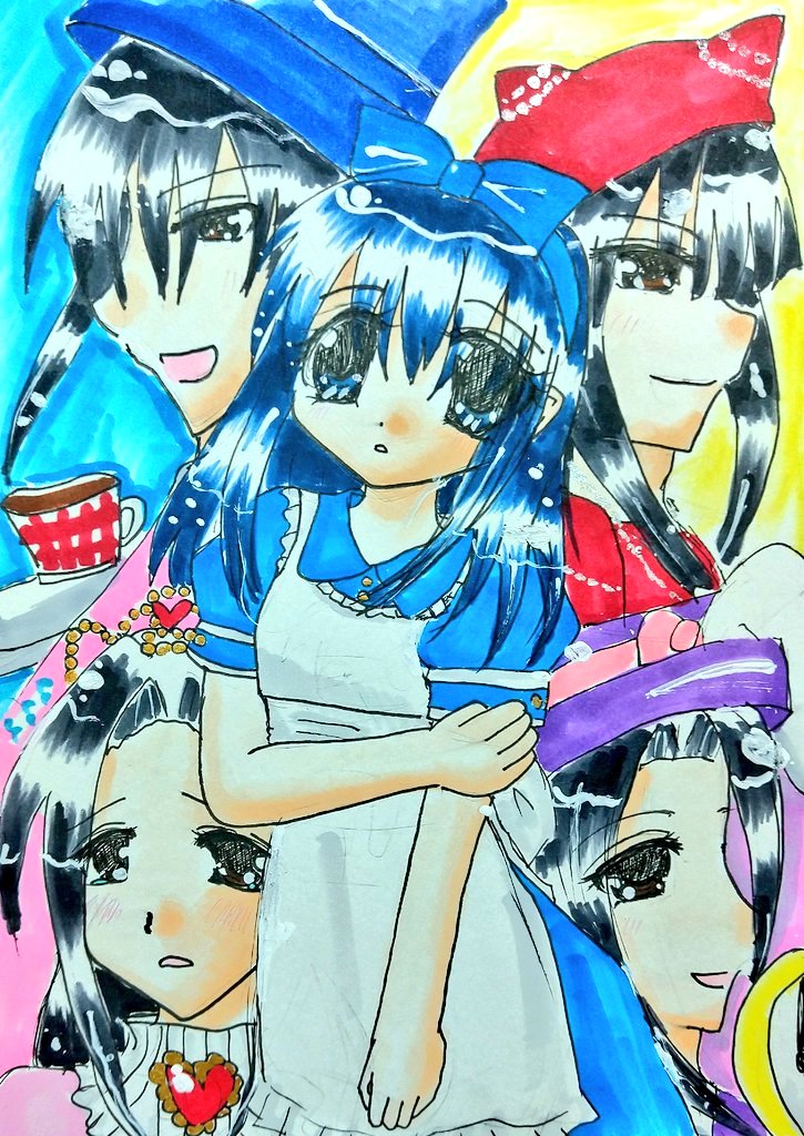 #今月描いた絵を晒そう #コピック #ルプルーム あけおめうさぎ2枚と、悠君赤ずきん(男子の初描きがこちら)と、ロリィタなヒロインズイラストの4枚描きました( ╹▽╹ ) 今回は 鈴奈ちゃん笑顔率高し…! あとはコピックとルプルームの併用も多めです(ㆁωㆁ)