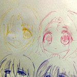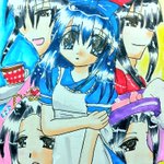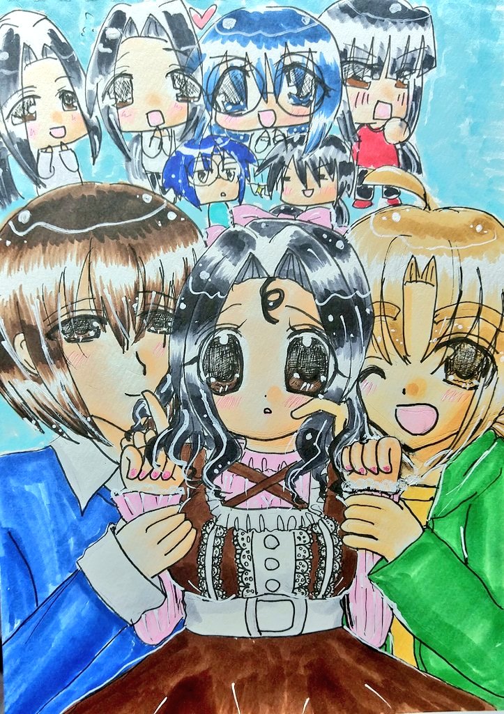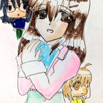 #今月描いた絵を晒そう その4 デジタル色塗り版は今月といえば今月なのかしら( ´;゚;∀;゚;) 元絵は4月のもの。 バケツ塗りメインのメイド鈴奈ちゃんと、ブラシ塗りの男子二人です(*´ω`*)