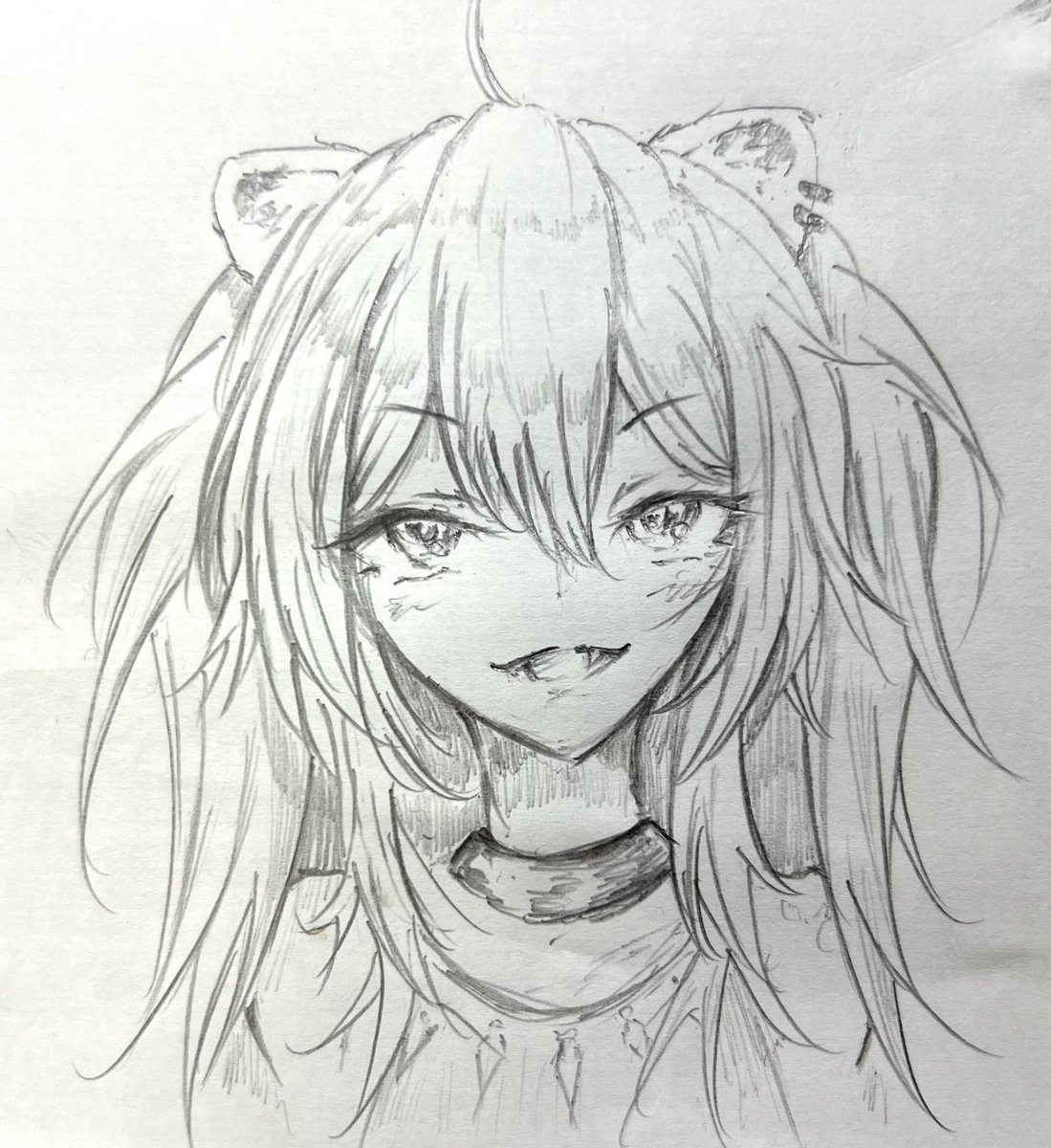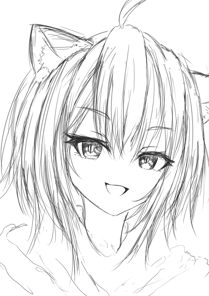 愁いを含んだおかゆんが描きたくなって、ラフ。 #絵かゆ