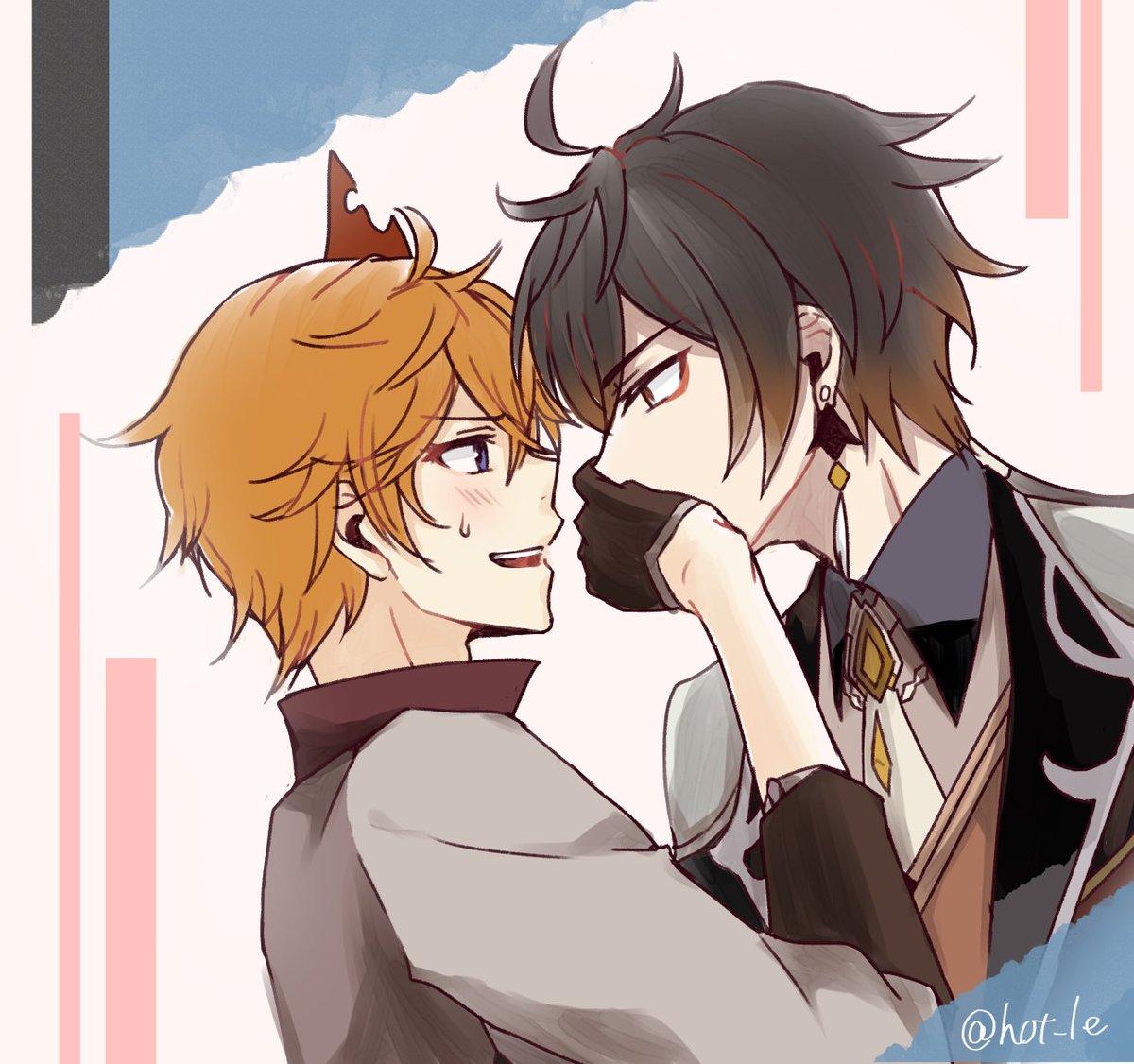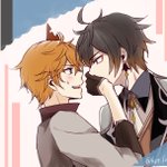 フォロワーさんのお誕生日のお祝いに初めて鍾タル描いた💕タルの服の装飾は心の目で補完だよ…!!