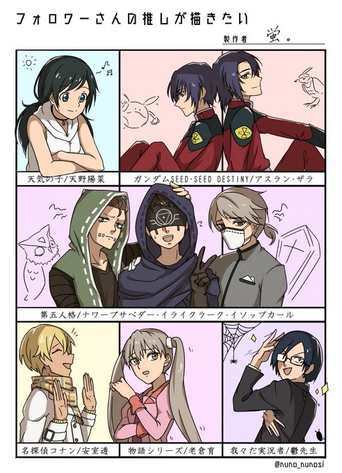 #フォロワーさんの推しが描きたい リクありがとうございました~!初描き7人なので解釈違いやら何やらあったらすみません(笑) また機会があったらお願いします!!😊