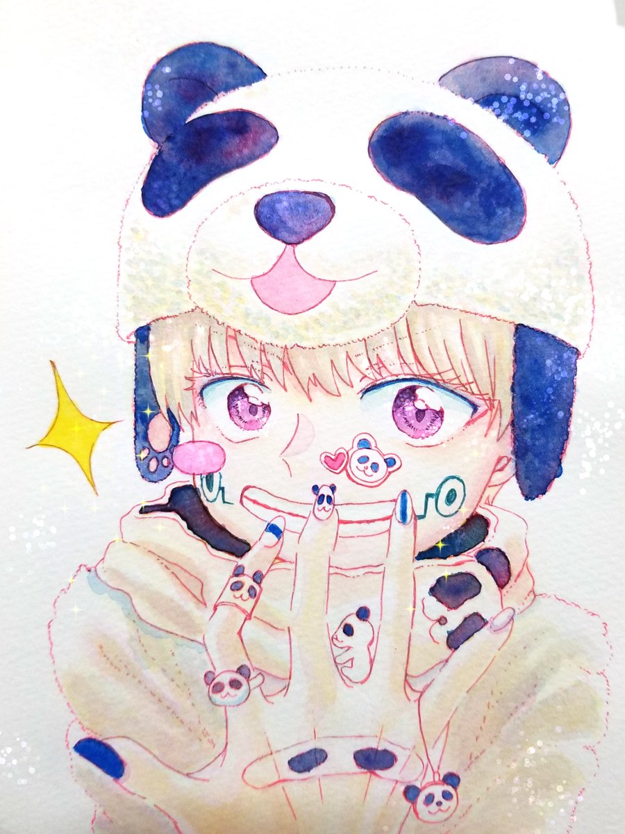 1 6 #呪術廻戦ファンアート #jujutsukaisenfanart #水彩 棘くんパンダモード〜!🐼🐾 21/06/06 19:35
