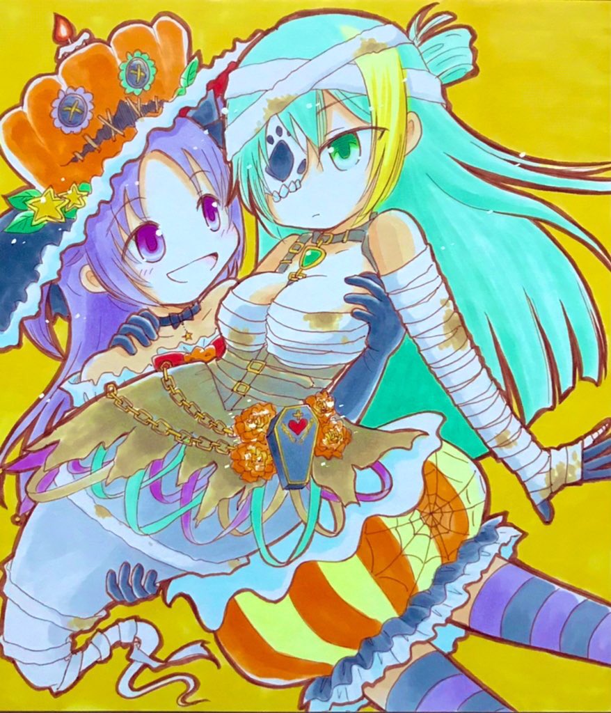 今年描いた色紙②10月プリレコ みかづき荘、ハロウィンアリかり、せなみこちゃん #マギレコ