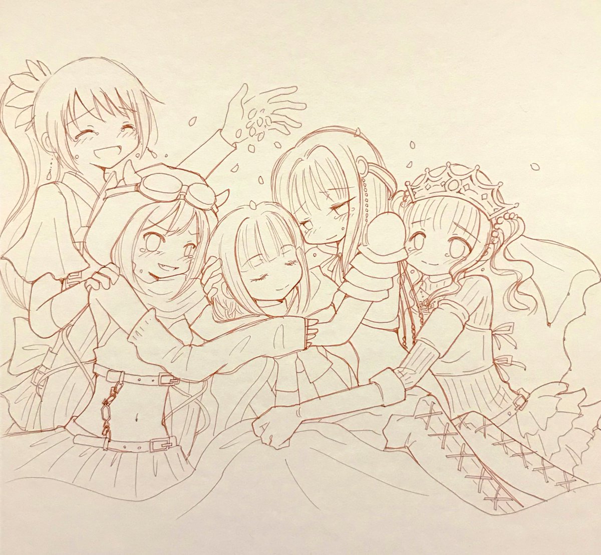 #今月描いた絵を晒そう #マギレコ 杏子ちゃん、黒江ちゃん、クシュちゃん、旭ちゃん
