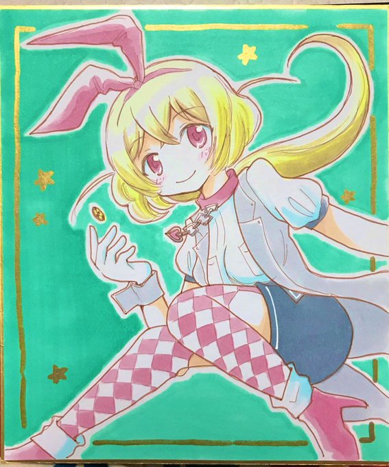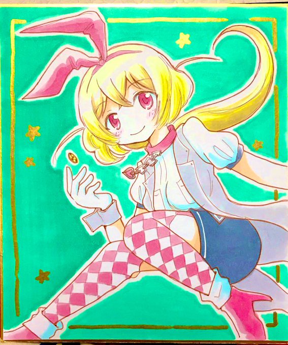 今年描いた色紙①5月プリレコ 黒江ちゃん、杏子ちゃん、クシュちゃん、旭ちゃん #マギレコ #まどマギ