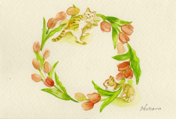 3 5 今日はねこの日。 minne.com/items/31379467 #art #猫の絵 #絵 #絵画 #イラスト #にじみ #水彩 #painting #油絵 #絵のある暮らし #透明水彩 #絵が好きな人と繋がりたい #チューリップ #ねこ #猫 #minne #minne_new #猫の日 22/02/22 15:59