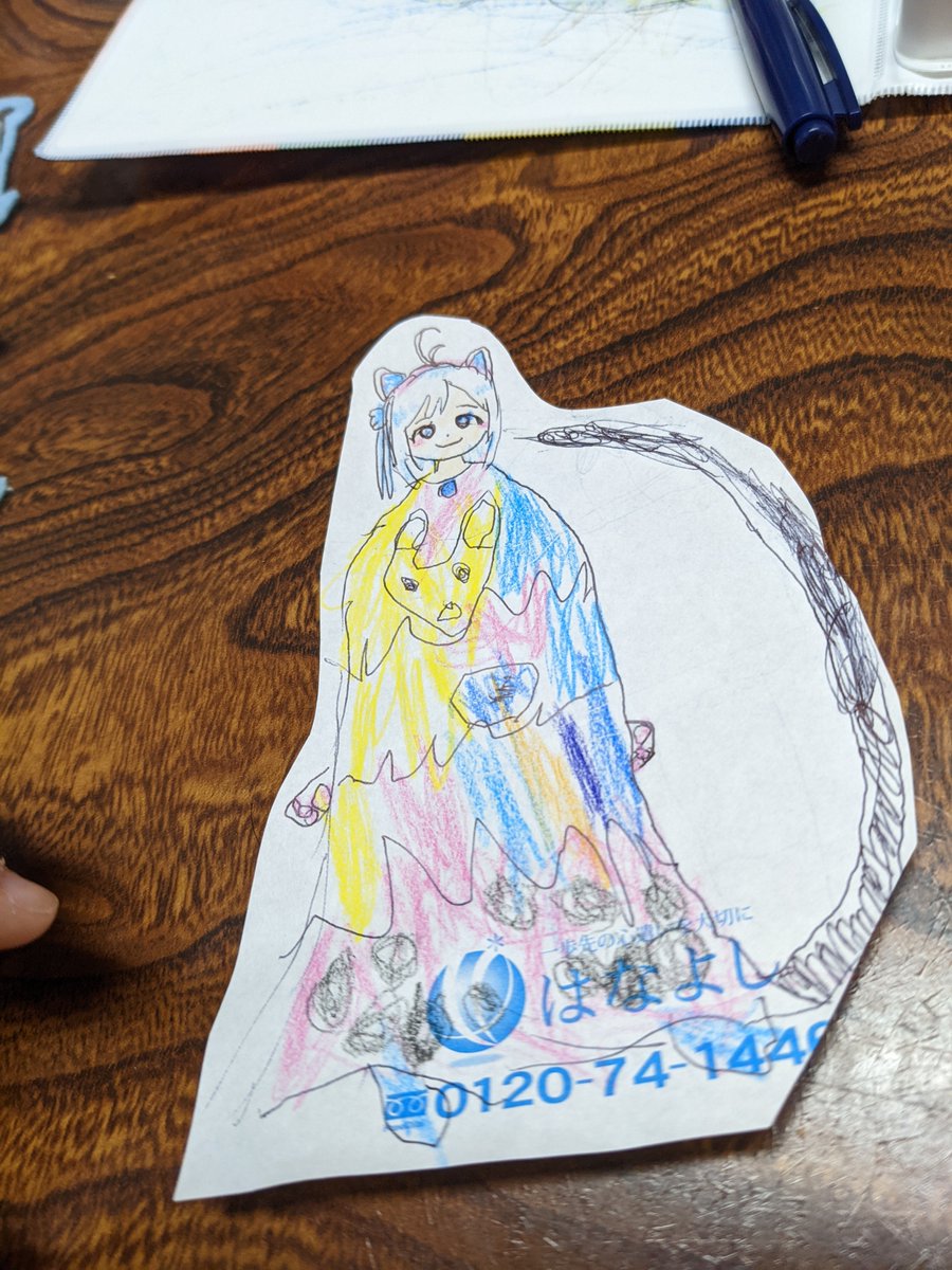26 95 姪っ子(5歳)がまたシロちゃんのドレスを描いてくれました。 題名「ねこちゃんドレスシロちゃん」 #SiroArt 22/09/25 13:06