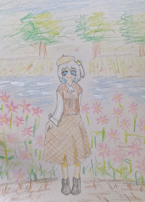 秋コーデシロちゃんとコスモスの川辺 #SiroArt