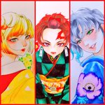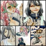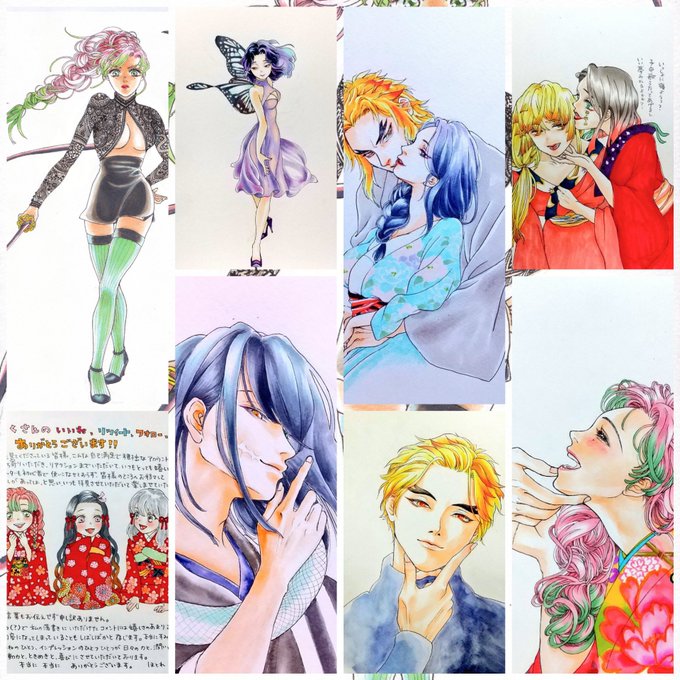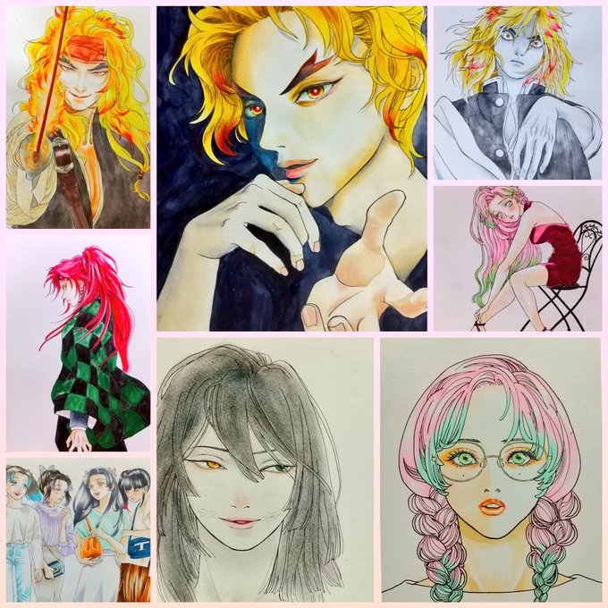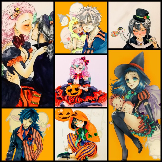 #今月描いた絵を晒そう 2021年11月 四枚目はキャラのリクエストをいただいたものです。 右上から時計回りに サン!ジ ウ!゙ィク!トル とらとま!ゆこ イ!サ!゙ーク ブラ!ット!゙レイ