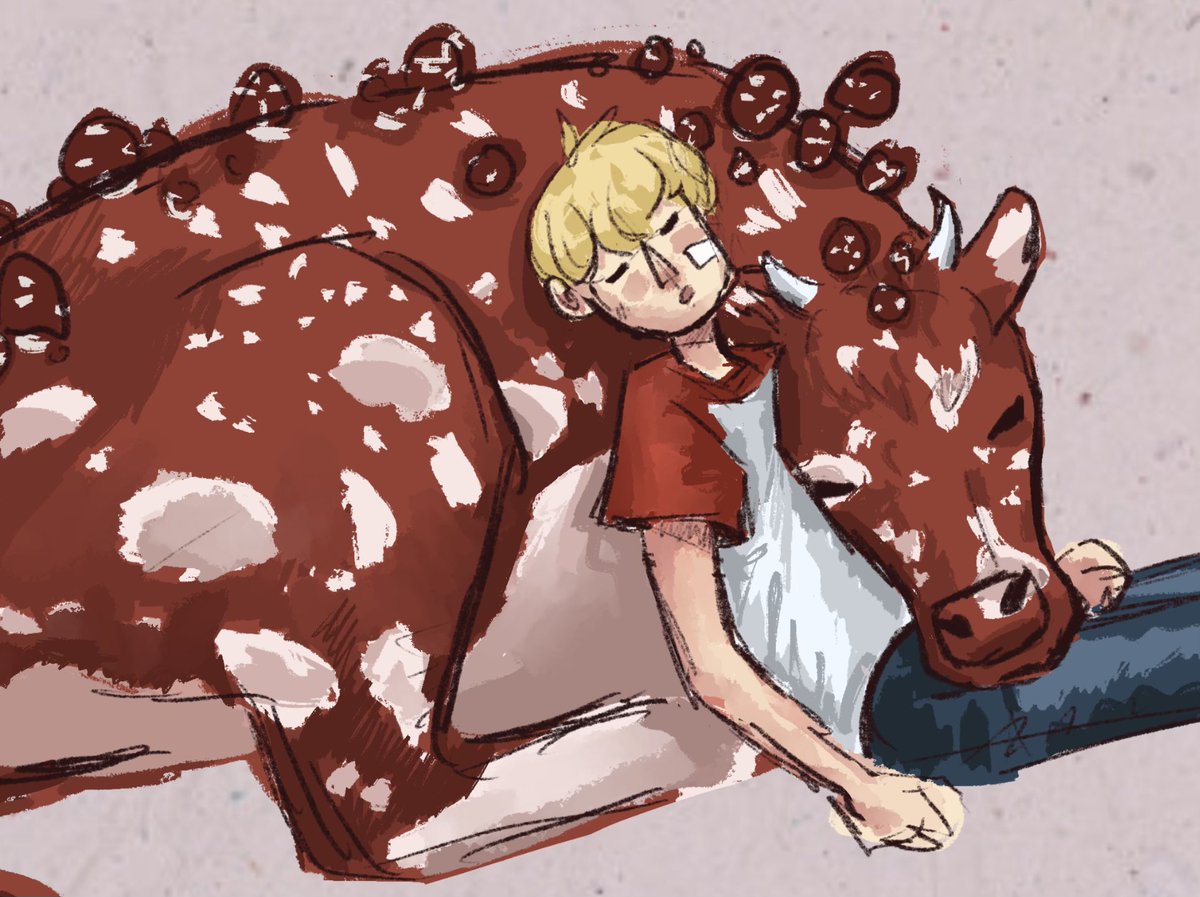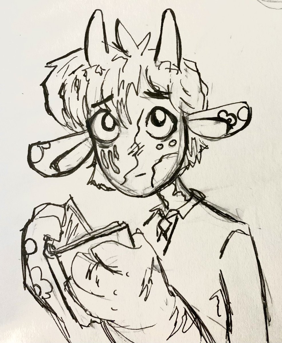 Actually forgot that I had a twitter lmao but tbf tumblr is being kinder to me rn HERE have Tommy w a mooshroom I’ve named her Clementine #TOMMY #mcytfanart #tommyinnitfanart #tommy10million woo #dsmpfanart #dreamsmpart
