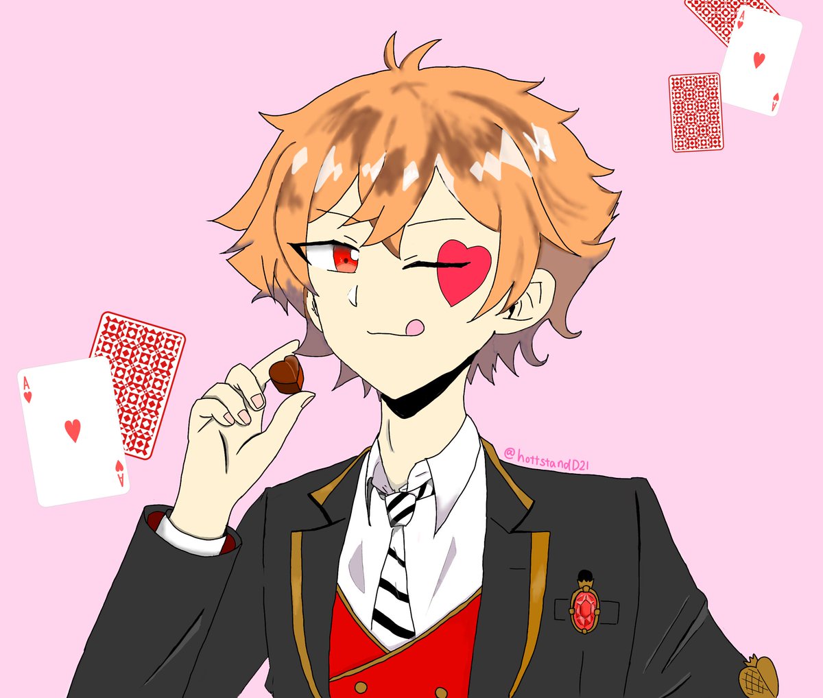 バレンタインイラストを描くつもりがホワイトデーになってしまった(トランプはアイビスの素材を使いました) #ツイステ #ツイステファンアート