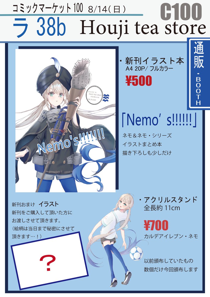 あなたのサークル「Houji tea store」は、コミックマーケット100で「日曜日東地区 "ラ " 38b」に配置されました!コミケWebカタログにてスペース配置場所公開中です! 2回目の同人イベントですが頑張ります!💪 webcatalog.circle.ms/Circle/Map/162… #C100WebCatalog
