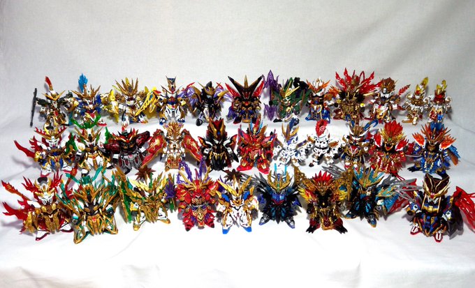 作り出して約1年、ようやく全ての創傑伝キットを作り終える事が出来ました〜!! 何より自慢なのが全て手を加えて作成したということ!達成感ハンパないし最高に嬉しいです!! #三国創傑伝 #ガンプラ好きと繋がりたい