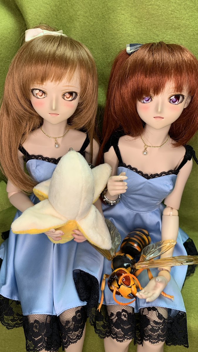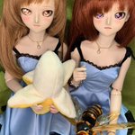 今夜のお題は【カラーイメージ:『きいろ』】 ピャオ: カラーイメージ黄色なら、やはりこの子かしら? フェイ: このもふもふ、もちもちバナナ🍌も黄色なのよ? ピャオ: ‼️ #今夜のドール撮影120分一本勝負