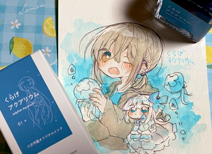 きーちゃん(@ksrgiing )から一足お先にお誕生日プレゼント頂きました!!わああ本当にありがとうー!!!!前からインクにくらげって名前が付いてて気になっていたので嬉しい…!!きーちゃん宅のあすかくんとうちのクラゲちゃん描かせて頂きました…!! 青色が綺麗すぎる…!!大事に使います…!