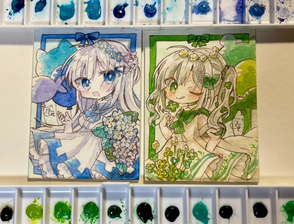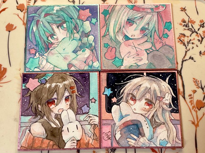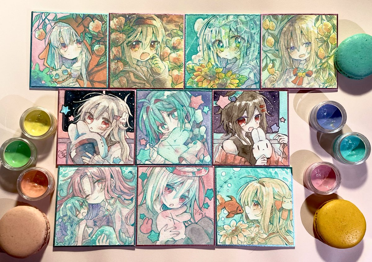 20 107 朱熾夏を水色色紙に出来なかったのが惜しいんだけどこう並べるとかわいいし一応世界軸が同じなのでちょこちょこ共通させたりした… 22/08/22 09:03
