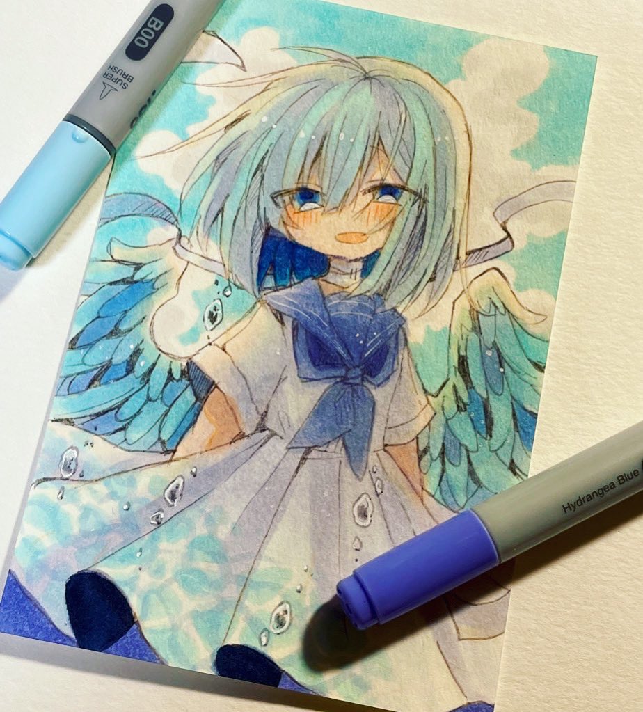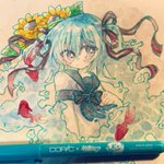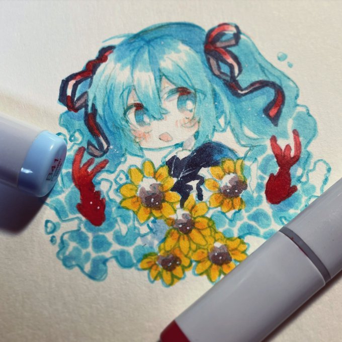 15 129 コピックマルチライナーターコイズとクサカベさんのマカロンカラーで描きました。 22/08/09 20:40