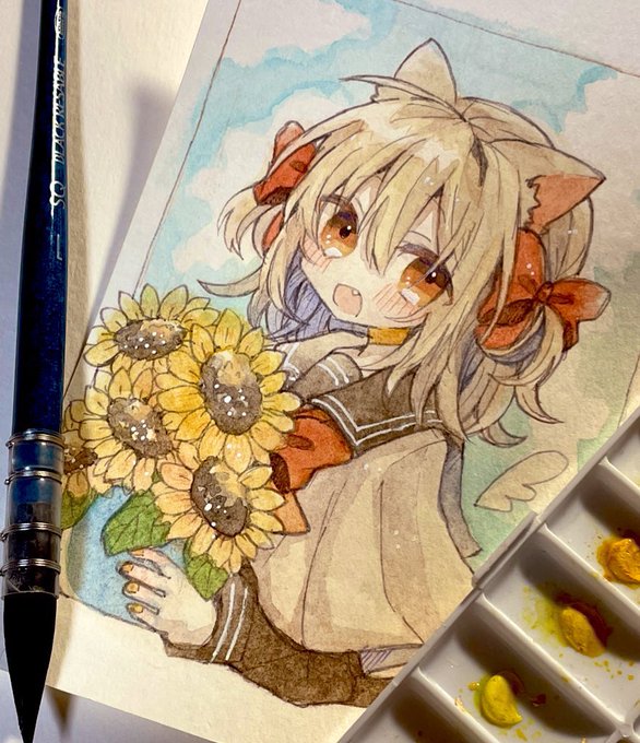 素敵な企画に参加致します…! ホルベインさんやクサカベさんやW&Nさんを愛用してます…!! 最近は色数縛って塗るのや青と黄色の絵が多いです。 #水彩発掘隊