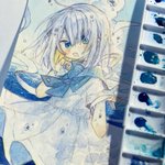 #フォロワー10000以下の一次創作作家発掘フェス 透明水彩やコピックで絵を描いてます。 青と白い髪の子を描くのが好きです。