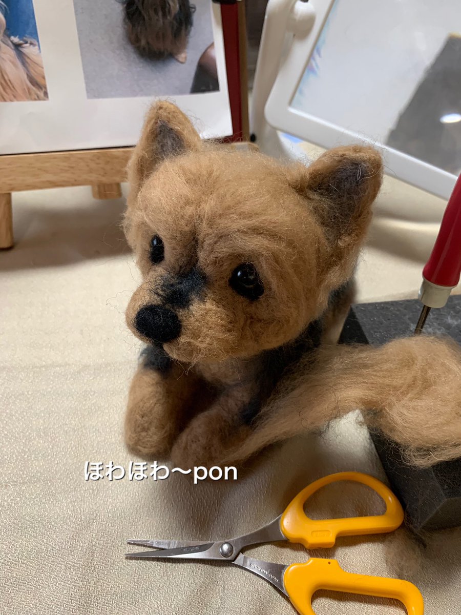 0 21 ご注文頂いた手乗りサイズのヨーキーちゃん2体、実は同じ子がモデルです。 左はトリミング後のスッキリな時、右はトリミング前のモシャモシャした時…すごく勉強になりました✨ 先週末無事に飼い主さまの元へ旅立ったヨーキーちゃん。 この度のご縁に感謝致します😊🙇♀️ #羊毛フェルト 22/06/20 16:51