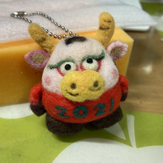 0 8 来年の干支のうし君〜💕 歌舞伎メイクが可愛いい😍 creemaに出品予定です #羊毛フェルト #オリジナル #creema #うし #干支 #歌舞伎メイク 20/10/27 12:05