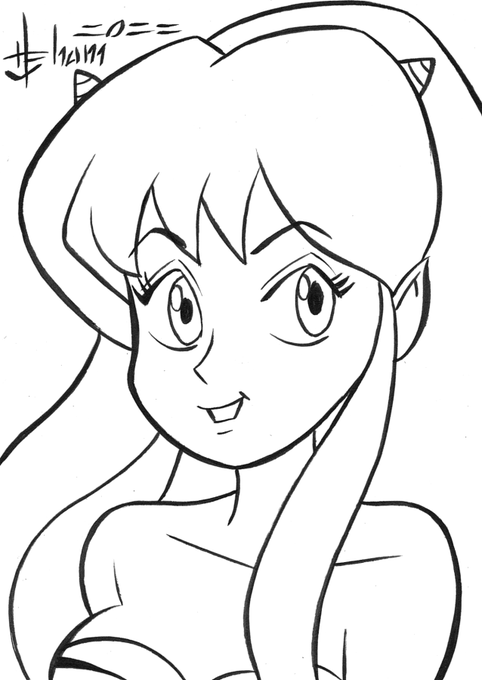 Here's a drawing I did of Lum from Urusei Yatsura. #lum #uruseiyatsura #anime #arttrober2022 #inktober2022