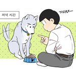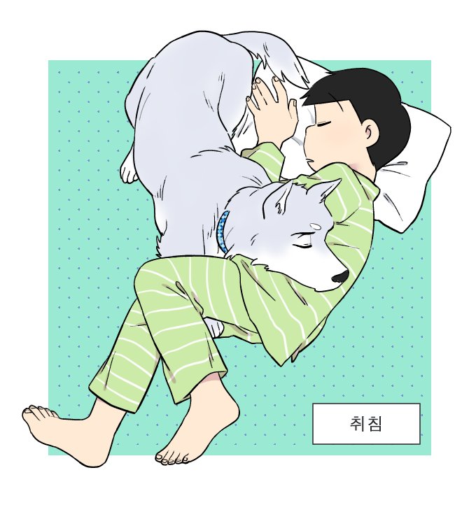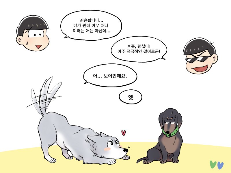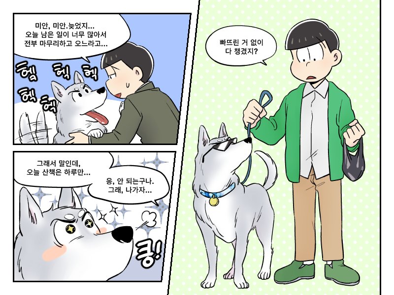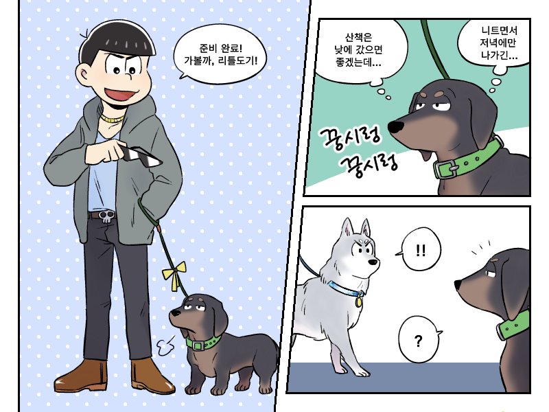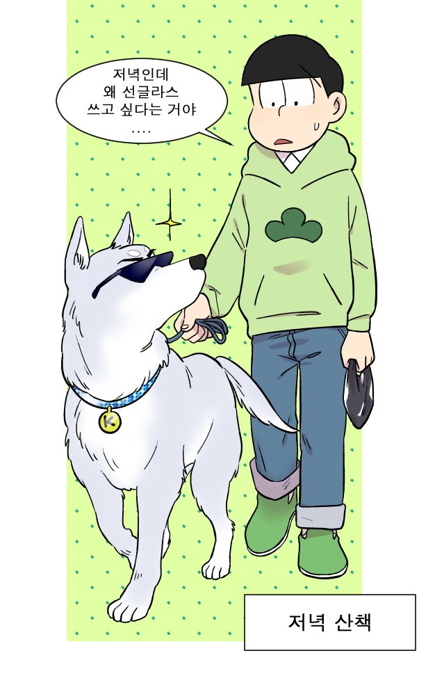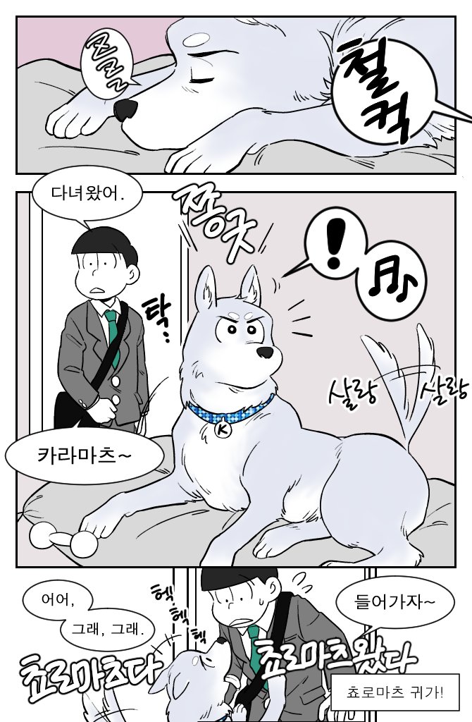 교류전에서 받았던 생강님 리퀘 >쵸로마츠x개 카라<입니다 회사원 쵸로마츠와 대형견 카라의 일상??같은 느낌....😂😂😂😂😂😂