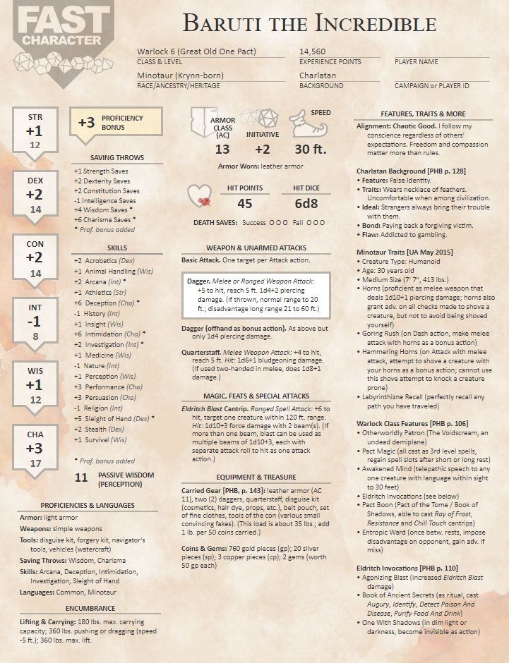A friend of mine came up with the idea to use this page fastcharacter.com, hit the random button and draw whatever came up, the page gave me a warlock minotaur named... BARUTI THE INCRECIBLE!!!! #art #DnD #dndart #DnDcharacter