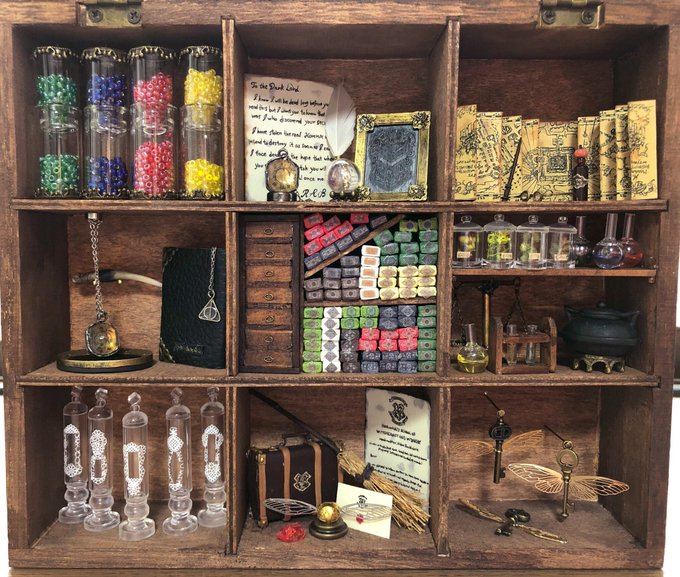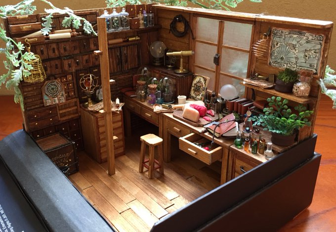 ニュートのトランクの中の小屋出来ましたー!横19㎝、高さ14㎝、奥行き16㎝位です。トランクの中に全部収まる仕様(^^) #FantasticBeasts #スキャマンダー先生のトランクの中