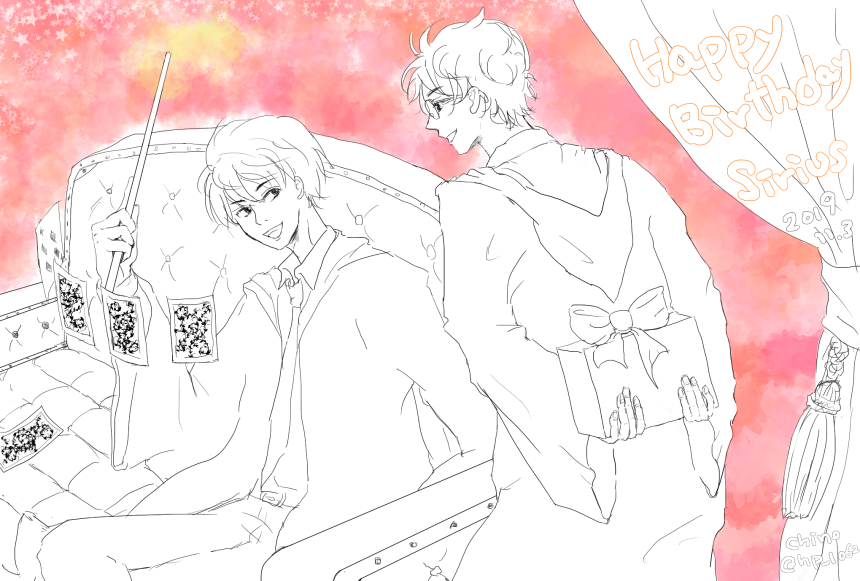 「シーリウス♪」 「なんだよ、にやにやして」 シリウス誕生日おめでとう!! #HappyBirthdaySiriusBlack #シリウスブラック生誕祭2019 #シリウス生誕祭2019 #シリウス生誕祭
