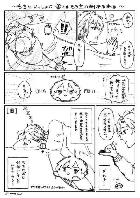 もちと一緒に寝てるもち主の朝あるある漫画です。