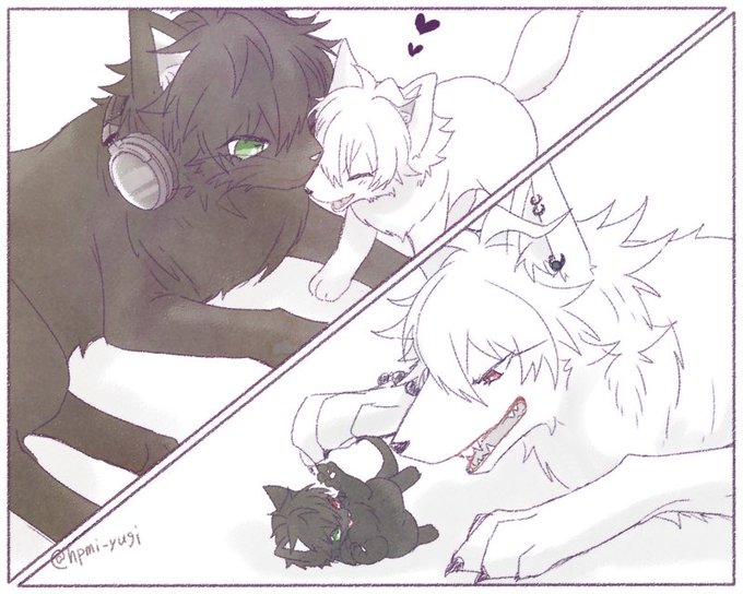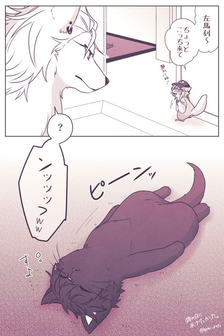 39 569 (※おまけ) 得意げに尻を見せる柴犬の子犬の動画を見て相互さんと「これをショタ刻さん🐺とママ郎くん🐈⬛で見て〜!!」とキャッキャしたので落書き 23/02/17 23:19