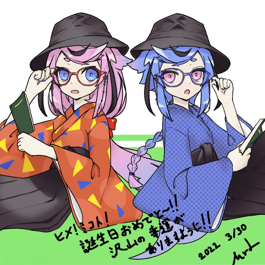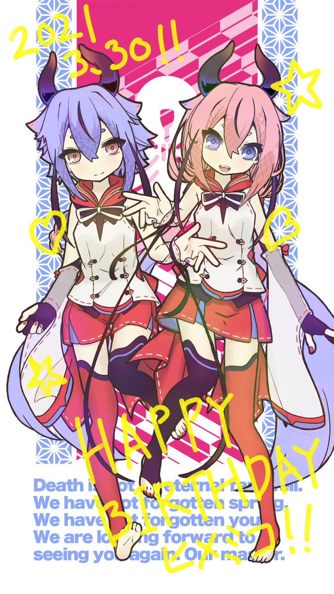 ヒメ!ミコト!誕生日おめでと〜〜〜!!!🎉🥳🥳🥳🎉 2人の未来が幸運と良い縁に満ち溢れます様に!🌸🌸🌸 #鳴花生誕の宴2021