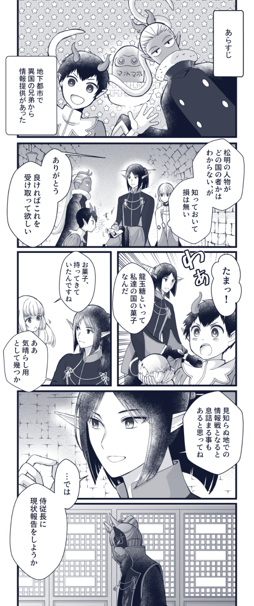 【PFAOS】謝礼は定番のやつ【暗黒の地下都市】 #漫画 #【極東侍従隊・天弓】 #ハイペリア #pixivファンタジアAOS #暗黒の地下都市【青】 pixiv.net/artworks/79356…