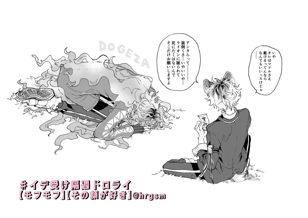 【8/21】レオイデ新刊 | a #pixiv pixiv.net/artworks/10056… 🦁💀新刊サンプルです B5/20p/300円(全年齢) 8/21インテ大阪3号館E22a やわらか産業 明るい・暗い/同級生・B所の両立サイレント漫画です。 通販…ecs.toranoana.jp/joshi/ec/item/… やるせないラブがお好きな方に刺さると嬉しい!よろしくお願いします
