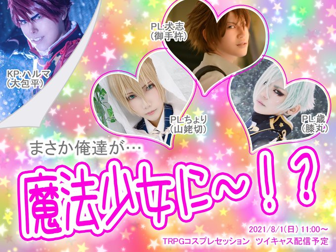 11 26 2021/8/1(日)11:00〜 コスプレしてTRPGセッション ツイキャス生配信しまーす! 全員リモートでワッショイ! お時間ある方はぜひ見に来て下さいませませ✨ 21/07/30 19:48