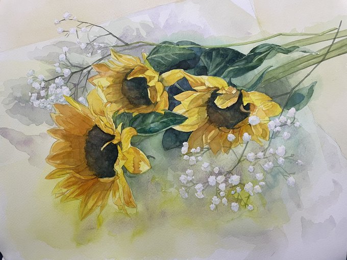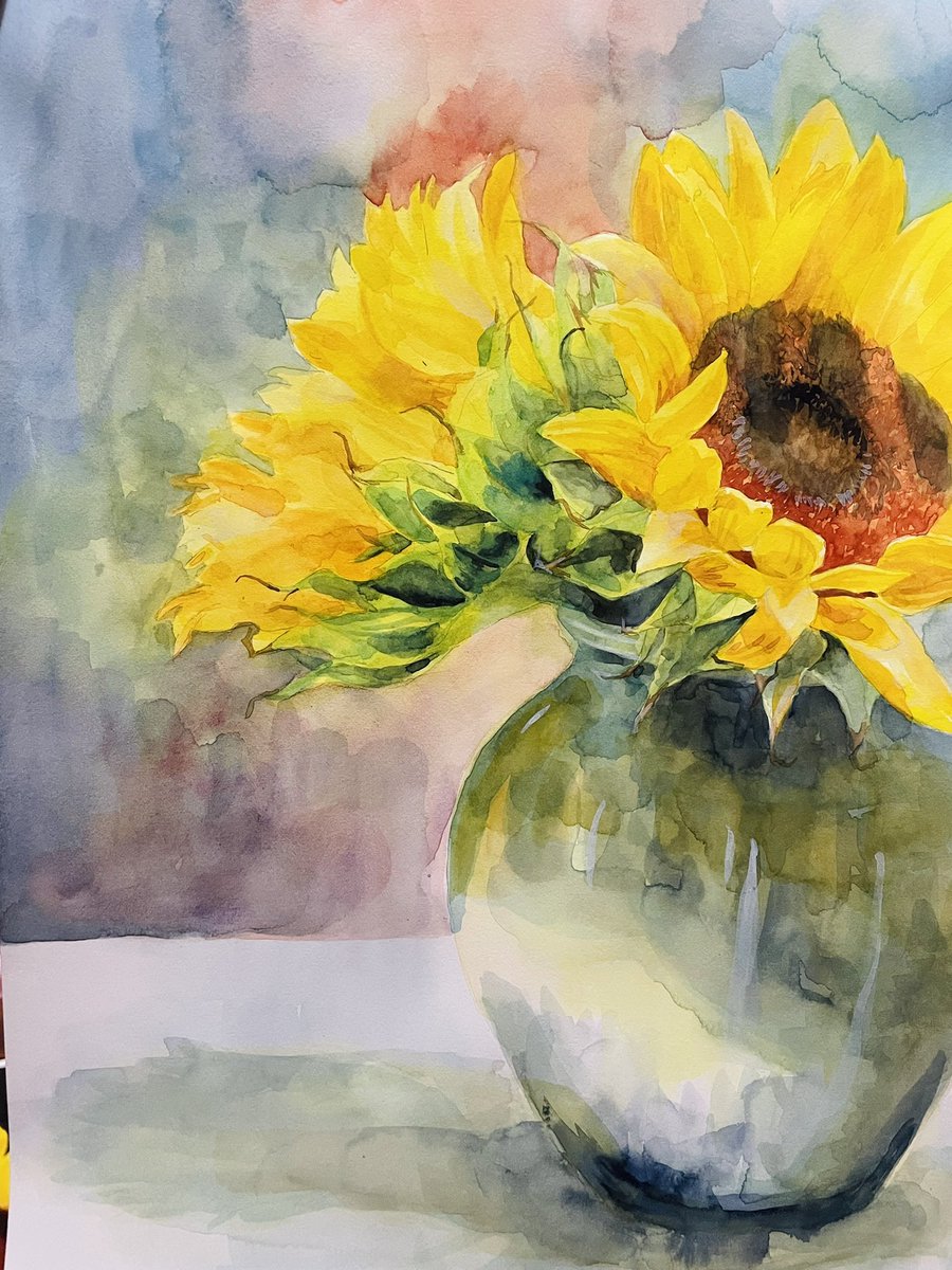 ひまわり描いた🌻 #水彩画 #水彩絵 #watercolour