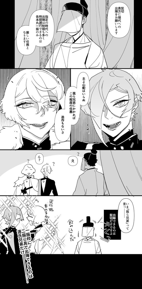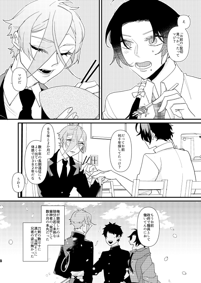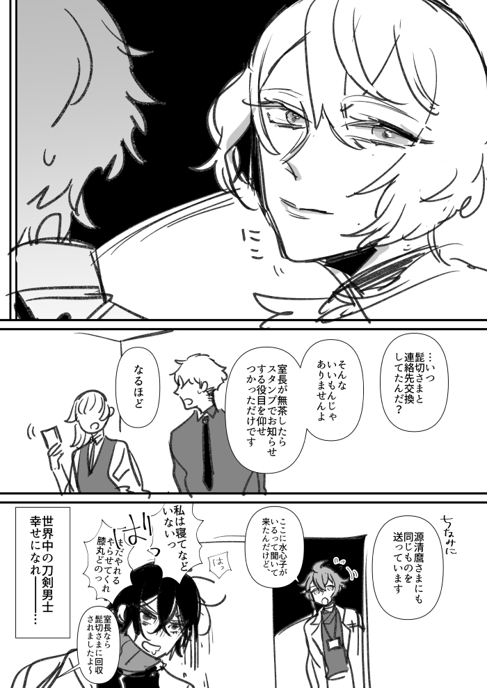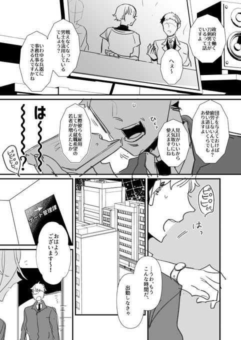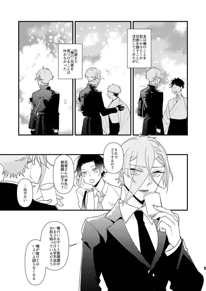 twitter.com/hrt02token/sta…このシリーズの政府で働く刀剣男士たちのお話。 スパコミでペーパーにしようとしたけど全然間に合わなかったのでここで供養。髭膝と麿水ちょっと。