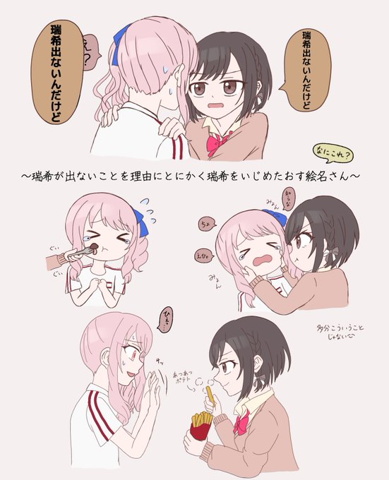 55 332 イベ終わったうえに次イベ始まっちゃったけどマロありがとうございました🎶🎶 絶対こういうことじゃないなと思いながら描きました 許してください(※なーんがみずちゃんをいじめてます)(リプ欄自己責任で!) 22/05/20 21:16