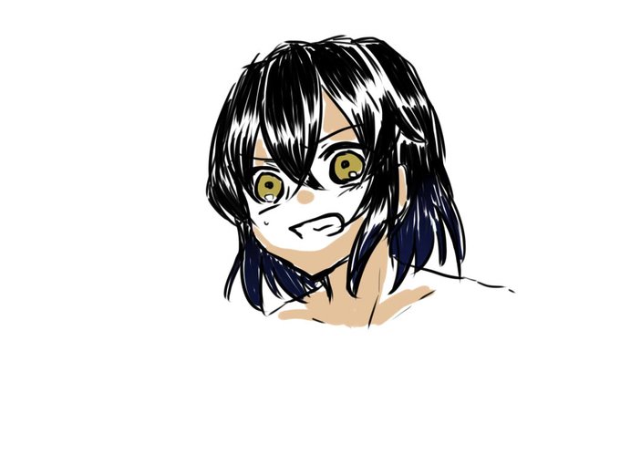 伊之助初描き スマホからだと毛先の青のグラデわっかんね~!!😂😂
