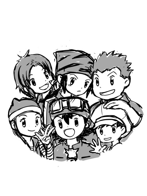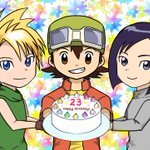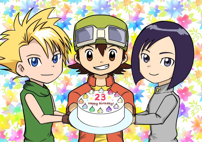 デジアドと呼べるイラストがこれらしかなかったもので…(衣装がデジコロで3人しかおりません🥲) 2年前に描いた過去絵ですが、お祝いです!☺️🙌デジモンの日ー!✨ #デジモンの日 #ハチイチ #お台場メモリアル2022